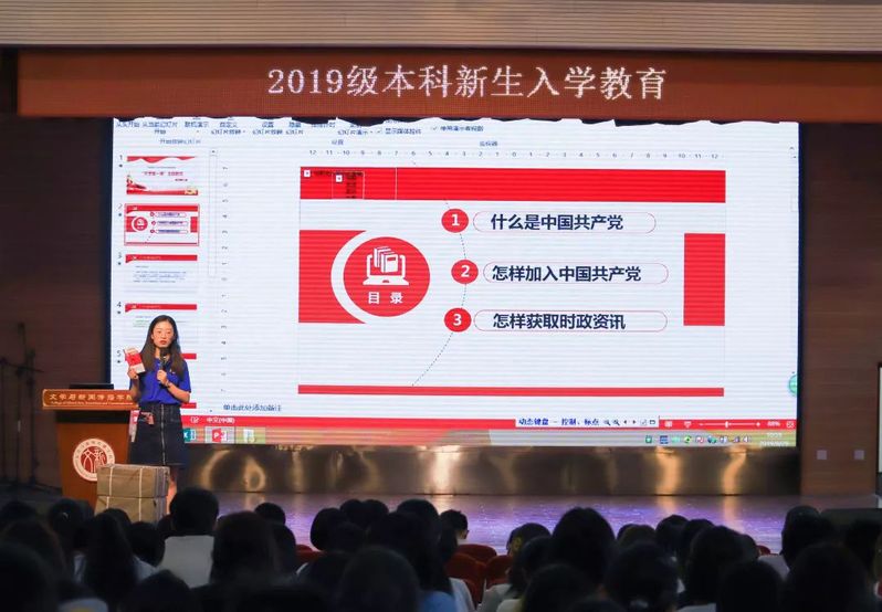 随后,2019级本科新生第一堂党课正式开始,许春颖从“什么是中国共产党”“怎样加入中国共产党”“怎样获取时政资讯”三个方面进行讲授。她从中国共产党的性质和宗旨谈起,叮嘱本科新生能够深入了解党的思想路线和政策纲领,从思想上端正入党动机,树立远大理想,担负光荣使命。