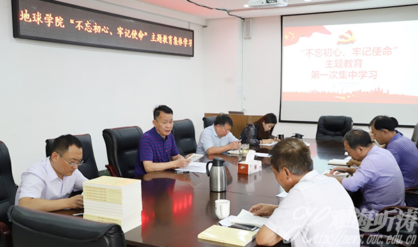 9月24日上午,海洋地球科学学院“不忘初心、牢记使命”主题教育学院领导班子第一次集体学习在地质楼B205举行。按照学院“不忘初心、牢记使命”主题教育实施方案安排,学院领导班子以“谋海济国守初心,走好新时代的高等教育长征路”为主题,集中学习研讨《习近平关于“不忘初心、牢记使命”论述摘编》(以下简称《摘编》)第一部分“中国共产党的初心和使命,就是为中国人民谋幸福,为中华民族谋复兴”,以及习近平在中央党校(国家行政学院)中青年干部培训班开班仪式上的重要讲话。学校第二指导组成员、学院党委理论学习中心组成员参加会议,会议由院党委书记吴军主持。