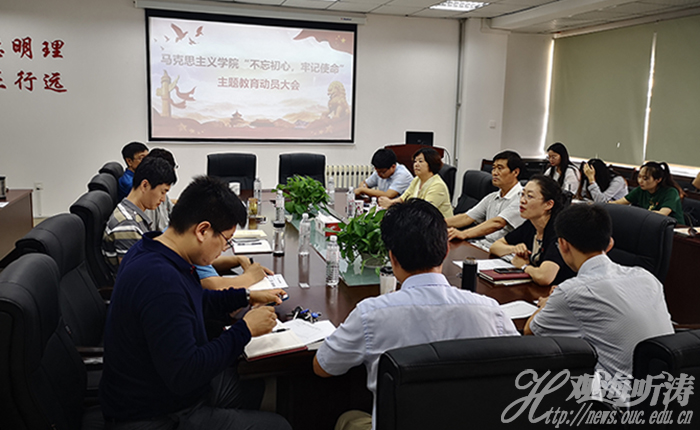 9月25日上午,马克思主义学院在学院210会议室召开“不忘初心、牢记使命”主题教育动员大会。学校党委常务副书记、马克思主义学院院长张静,学校主题教育第一指导组组长魏世江,指导组联络员闫学聪出席会议。学院党政班子成员和全体师生党员参加动员大会,学院党总支书记任玮娜主持会议。