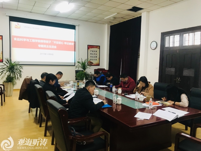 根据学校“不忘初心、牢记使命”主题教育工作安排,12月9日,食品科学与工程学院召开领导班子“不忘初心、牢记使命”专题民主生活会。会议由学院党委书记辛华龙主持,学院领导班子全体成员参加会议。
