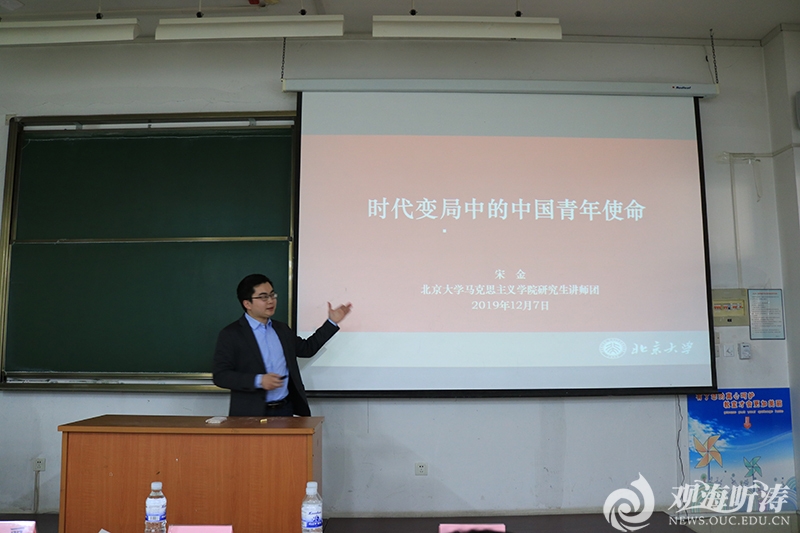 颁奖结束之后,北京大学马克思主义学院研究生讲师团常务副团长宋金以《时代变局中的中国青年使命》为题做了公开课展示,讲述在变局和困难中,青年应坚信理想信念和使命担当。