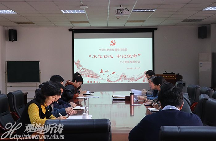11月19日上午,文学与新闻传播学院党委召开“不忘初心、牢记使命”主题教育个人剖析专题会议。学院党政领导班子成员参加会议,党委书记刘健主持会议,第五巡回指导组组长毕芳芳、秘书戴淑妮到会指导。