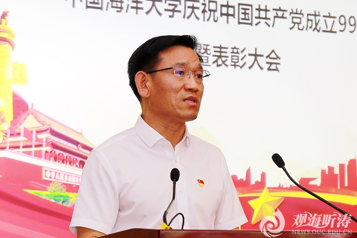 6月30日下午,开云电竞网址庆祝中国共产党成立99周年暨表彰大会在崂山校区图书馆第二会议室召开。会议表彰了优秀共产党员、优秀党务工作者和先进党支部,全体与会党员一同重温了入党誓词。校党委书记田辉在大会上发表了题为“拼搏进取、攻坚克难,奋力夺取常态化疫情防控和事业发展双胜利”的讲话。教育部党建工作联络员、原中国石油大学(华东)党委书记郑其绪,党委书记田辉,党委副书记、校长于志刚,党委常委、副校长李巍然、闫菊、李华军,党委常委、总会计师王剑敏,党委副书记、纪委书记杨茂椿,党委常委、校长助理吴强明,校长助理于利出席会议。党委常务副书记张静主持大会。