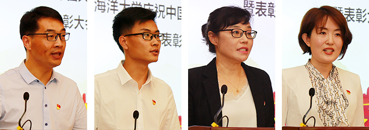 优秀共产党员代表李志刚、焦欣然,优秀党务工作者代表李颖,先进党支部成员代表牟宏玮在大会上发言