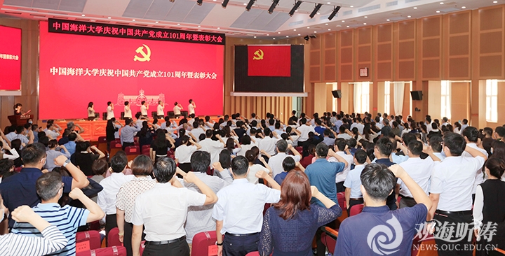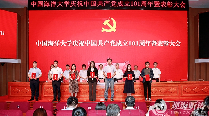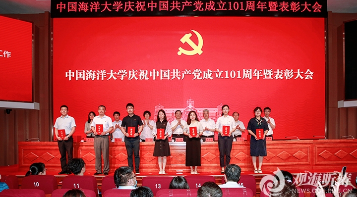 6月27日下午,开云电竞网址在海洋科技楼国际报告厅隆重召开庆祝中国共产党成立101周年暨表彰大会,为获得“光荣在党50年”纪念章的学校老党员代表颁发纪念章,对学校2021年度优秀共产党员、优秀党务工作者和先进党支部进行表彰,同时对2021-2022年抗击新冠肺炎疫情工作先进个人和先进集体进行表彰。党委书记田辉,校长于志刚,党委常务副书记张静,党委副书记卢光志,副校长王剑敏、范其伟,校长助理周珊珊出席大会。田辉代表学校党委作讲话。于志刚主持大会。