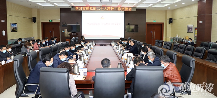 11月18日下午,开云电竞网址学习贯彻党的二十大精神座谈交流会在崂山校区图书馆第一会议室召开。党委书记田辉出席会议并讲话,党委常务副书记张静,党委副书记卢光志,党委副书记、纪委书记杨茂椿出席会议。会议由张静主持。