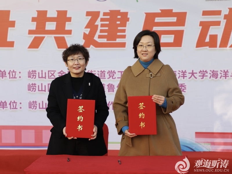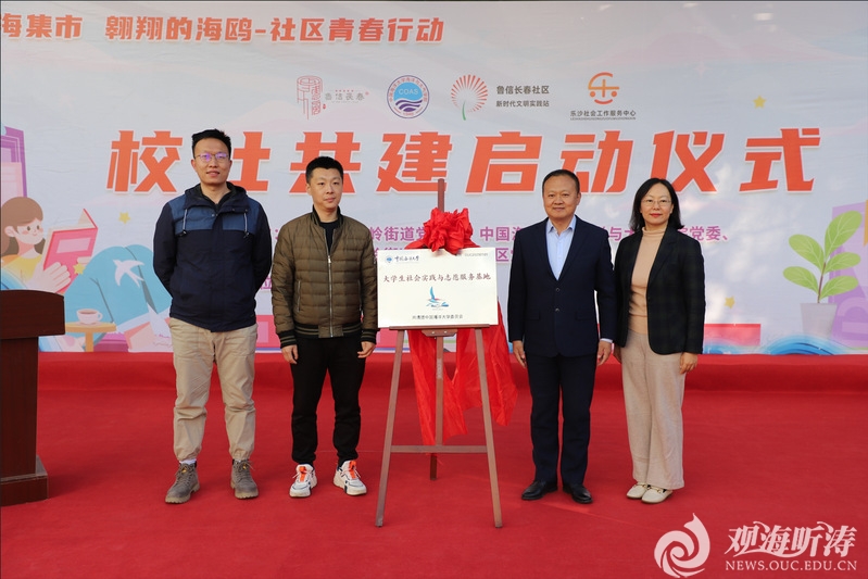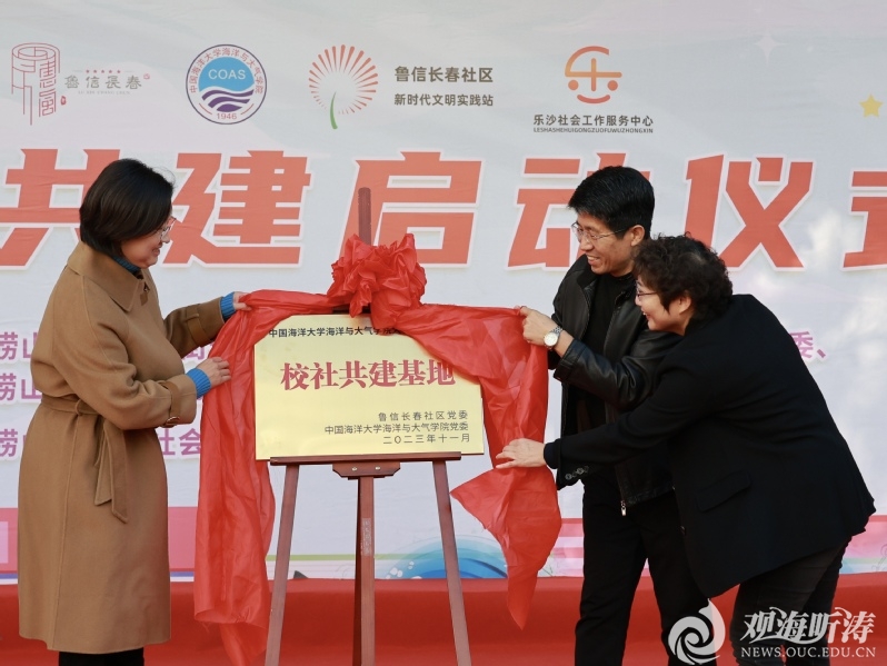11月18日上午,海洋与大气学院党委与崂山区金家岭街道鲁信长春社区党委合作共建签约揭牌仪式在鲁信长春社区中心湖广场举行。金家岭街道党工委委员、街道武装部部长孙如勇,鲁信长春社区党委书记赵瑞锋,全国少工委委员林风谦,埠东管区专职副书记徐相照,街道团委负责人牛苗苗,海洋与大气学院党委副书记、副院长孙婧,校团委实践部部长周星宇,海洋与大气学院团委书记耿雪晨,辅导员杜光超、巩钇和学生志愿者参加活动。