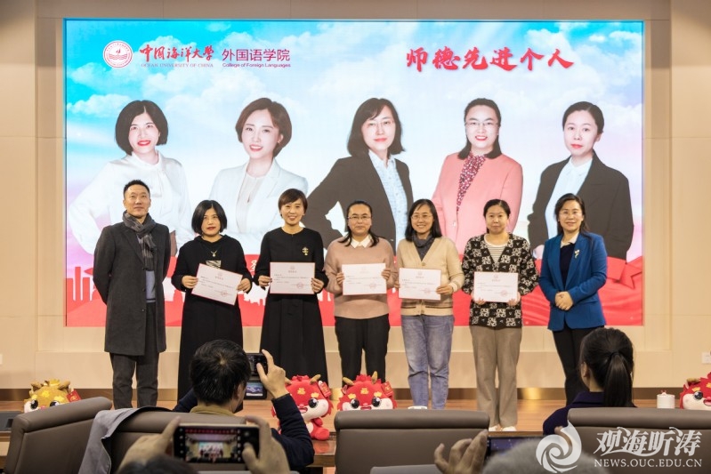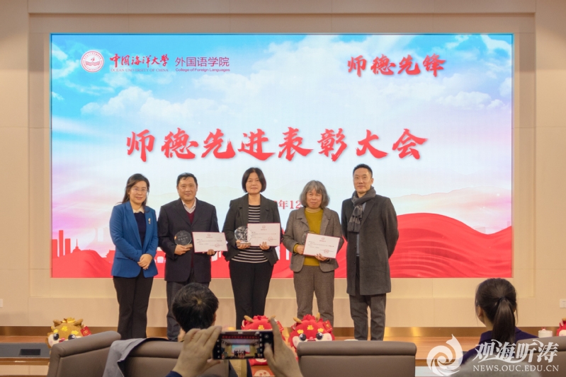 为深入学习贯彻习近平新时代中国特色社会主义思想,全面落实学校第十一次党代会战略部署,生动展现学院教师明德笃行的师范,传承发扬“海大大先生”精神,12月28日下午,外国语学院举行师德先进表彰大会。学院党委书记许玲玲、院长于国栋、学院党政领导班子、全体教职工和学生代表参加,学院党委副书记、副院长王道平主持大会。