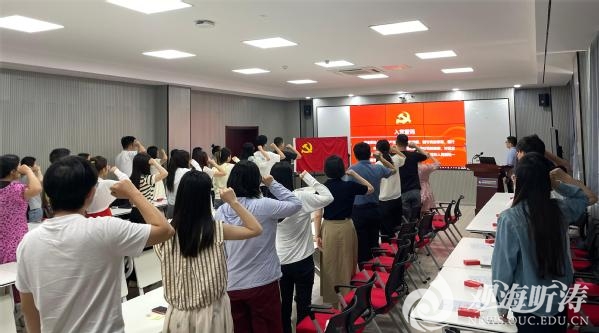 学生优秀共产党员代表、本科生第一党支部书记、2020级化学专业本科生林慧婷同志作了发言。她回顾了自己大学期间学习工作点滴,分享了四年的进步和成长。她表示,要时刻以党员的标准严格要求自己,不忘初心、牢记使命,用勤奋和汗水谱写新时代海大青年的奋斗新篇章。